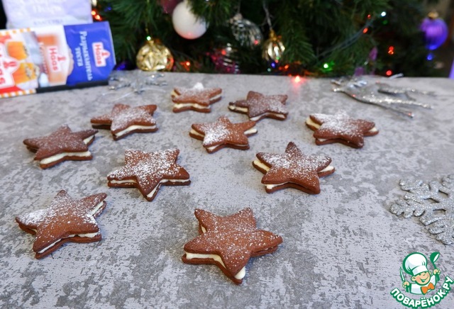 Предлагаю вашему вниманию рецепт очень вкусного и хрустящего шоколадного печенья " Двойные звезды". Они получаются нежными и рассыпчатыми. А прослойка из ганаша с белым шоколадом и лимонным пюре придают им оригинальный аромат. Эти печенья просто тают во рту!