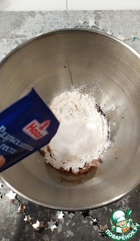 Добавить разрыхлитель от "ТМ Haas", соль, муку. Перемешать.