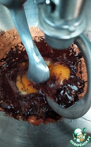 В чаше взбить с помощью насадки "весло" размягченное сливочное масло, сахарную пудру и какао от "ТМ Haas". -