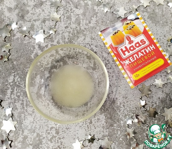 Далее 35 гр. сливок совместно с глюкозным сиропом и лимонным пюре подогреть до температуры 60°С. Добавить желатин от "ТМ Haas", затем растопленный шоколад, взбить блендером. Охладить до температуры 40°С и добавить оставшиеся 35 гр. сливок.