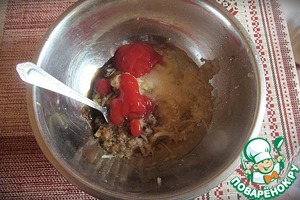Добавляем кетчуп (я использовала кетчуп-чили), соевый соус, сахар, растительное масло, перемешиваем