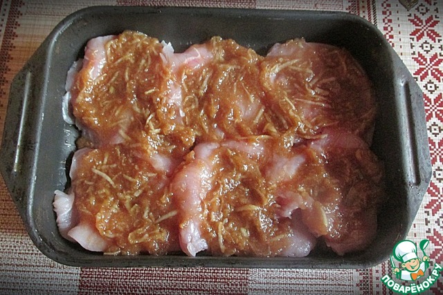 В форму выкладываем треть соуса-маринада