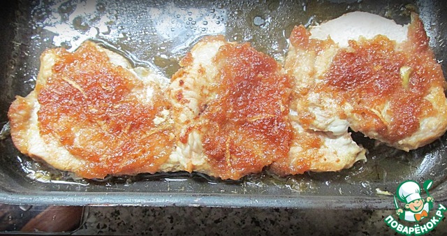 Сверху раскладываем ломти индейки и покрываем остальным маринадом