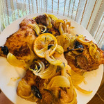 - Сок свежевыжатый (с двух лимонов ,пару ломтиков на курицу)