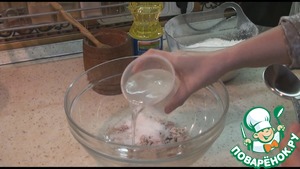 Для теста раскрошим дрожжи, добавляем теплую воду и сахар, размешаем.