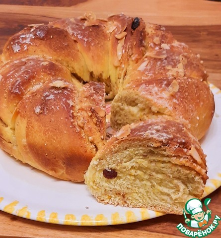 Ты тогда просто обязана попробовать второй рецепт этого же автора,Деборы,она просто богиня...Бриошь с яблоками,вареньем и изюмом.Очччччень рекомендую!