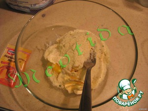 смешиваем маргарин, яйцо(одно)и картофельное пюре в однородную массу