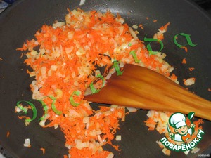 в небольшом количестве масла обжариваем измельченный лучок, до прозрачности, затем добавляем морковочку