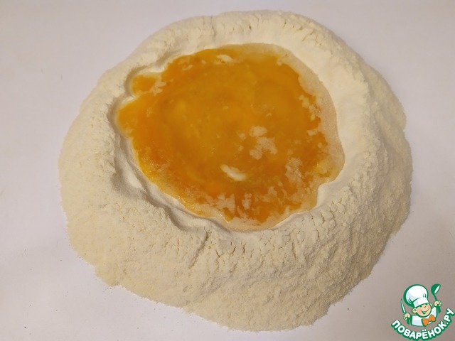 Я взял муку твёрдых сортов. Но, для первого раза, возможно, имеет смысл взять обычную. Дело в том, что мы не просто хотим сварить равиоли с яйцом. Наша задача - сделать так, чтобы яйцо внутри было жидкое. А с мукой из твёрдых сортов добиться этого сложнее, т. к. тесто будет дольше вариться. -