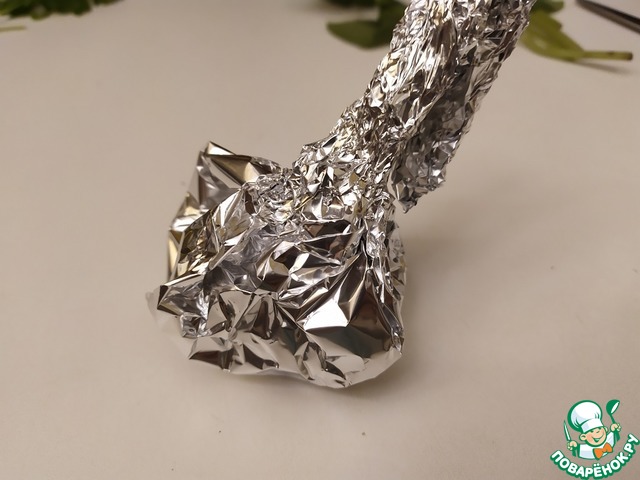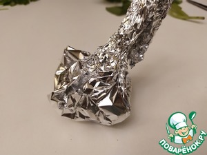 Завернуть в фольгу. Запекать в духовке 25 минут при 180 градусах.
