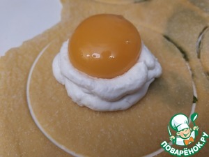 Рецепт «Равиоли с яйцом, рикоттой и соусом»: