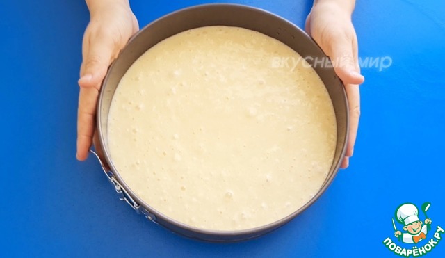 Дальше выливаем тесто в форму (у меня 24см, можно и на 22см)и выпекаем в разогретой до 180° в духовке 40-45 минут.