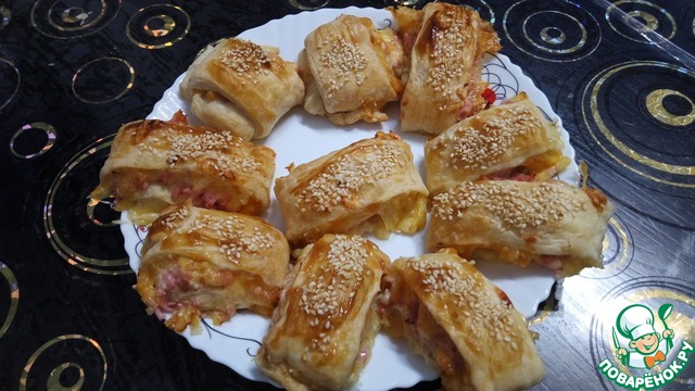 Рецепт «Закусочные рулетики с колбасой и сыром»: