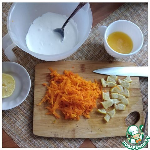 В сметане гасим соду и ждём реакцию. Тыкву натираем на средней тёрке. Лимон нарезаем мелким кубиком прямо с кожицей. Масло сливочное растапливаем в СВЧ 50 секунд при мощности 800. Растопите любым вами любимым способом.