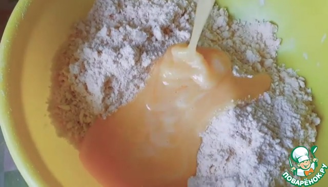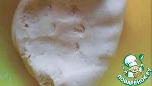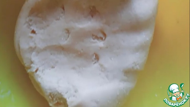Все перемешать до образования "колобочка" из теста). Разделить тесто на две части.