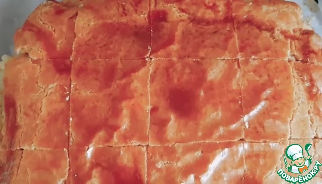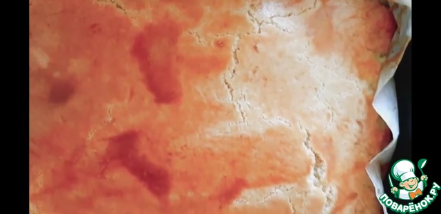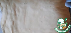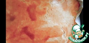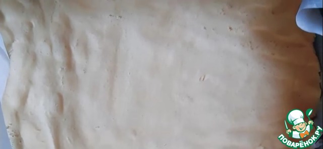 Выкладываю раскатанную часть по всей поверхности противня на пергаментной бумаге.