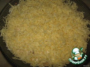 Сверху всё засыпаем сыром, натёртым на мелкой тёрке.