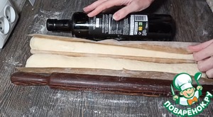 10) Тесту нужно отдохнуть перед выпеканием 40 минут. Чтобы заготовки остались в уже сформировавшей толщине и тесто не "подошло" - нужно по бокам сделать бортик (у меня скалка и бутылка).