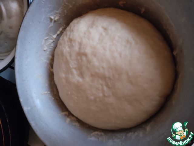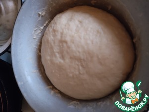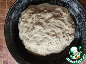 Дрожжи смешиваются с мукой, остальные ингредиенты добавляются по порядку. Замешать тесто и убрать в тепло на 20 минут.