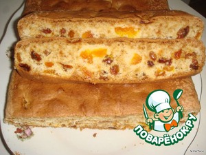 . В общем в равных количествах, а вместе 600 гр. Все до какого-то момента взбивала венчиком, а потом перемешивала ложкой. Взбиваем слегка яйца с сахаром, постепенно вводим муку с разрыхлителем, растит. масло и в конце сухофрукты. В смазанную маслом и присыпанную панировочными сухарями форму заливаем тесто, в духовку на 180 градусов и выпекаем до сухой палочки. Если начнет прижариваться сверху, как у меня с моей чудной духовкой, накрываем фольгой. И все!!!