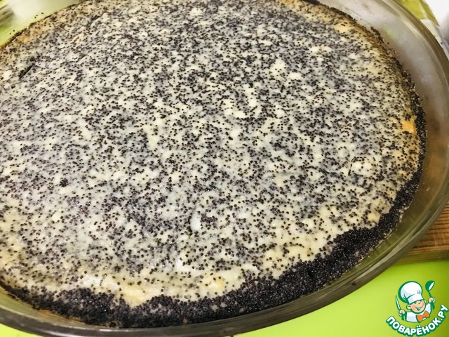 4. Далее на тесто выкладываем творожную начинку. Распределяем равномерно по поверхности теста. Смазываем сметаной и присыпаем маком. Выпекаем в заранее разогретой духовке при 180 °С ~ 25-30 минут. Время выпечки и температура зависят от особенностей духовки. Даём пирогу полностью остыть.