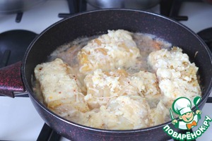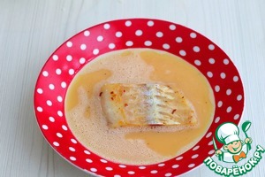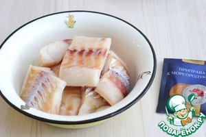 Филе трески, если она подвергалась промышленной глазировке, разморозить при комнатной температуре, затем слегка отжать для удаления излишек жидкости, нарезать на брусочки. Филе посолить, добавить белый молотый перец по вкусу. Затем добавить смесь пряностей для приготовления рыбы и морепродуктов. Смесь пряностей можно составить самостоятельно. В ингредиентах он указан.