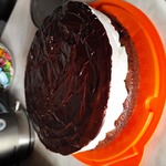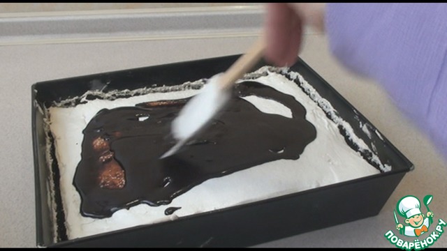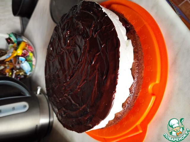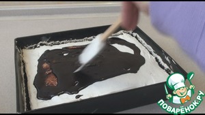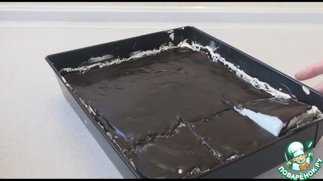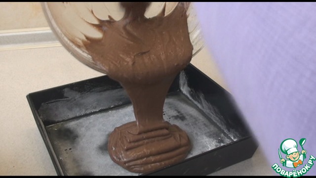 Сверху можно просто посыпать какао, а можно растопить шоколад с молоком и полить глазурью.