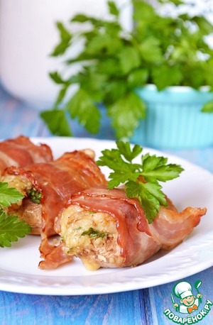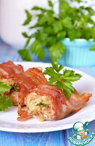 Рецепт «Шампиньоны с орехово-сырной начинкой в беконе»:
