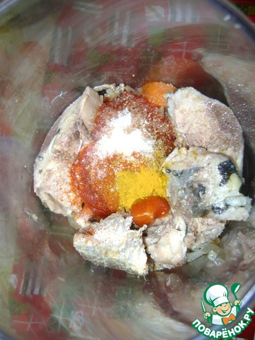 [+4]Небольшие изменения, сырок "дружба " заменила на поавленный в ванночке президент сливочный и вместо масла растительного добавила 1 ст л "жидкости "из консервов, они у меня были в масле и не добавляла лук.