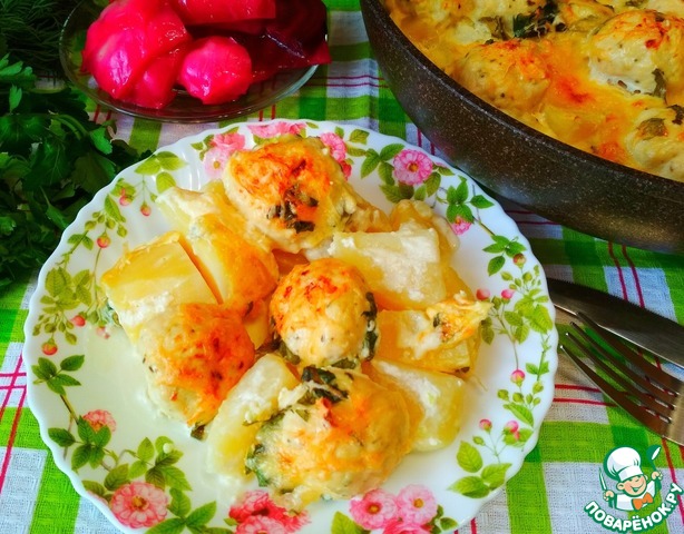 Рецепт «Фрикадельки с картофелем в духовке»: