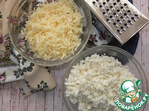 Сыр, я брала два вида сыра, можно обойтись и одним, трем на терке.