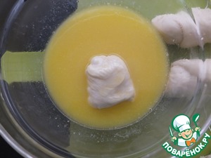 Сливочное масло растапливаем, каждый из кусочков окунаем в растопленное масло.
