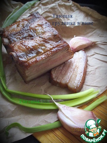 Я очень люблю грудинку. Нахожусь в постоянном поиске новых интересных рецептов. Однажды на кулинарном канале попался рецепт приготовления простой в приготовлении, а результат меня очень порадовал. Грудинка получается сочная, мягкая и очень ароматная.