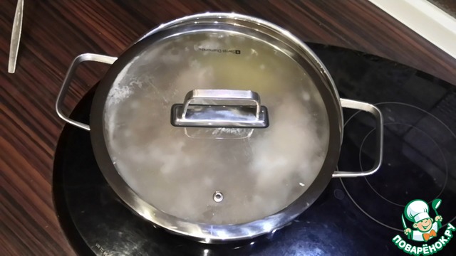 Оставляем вариться бульон 2-2,5 часа, на слабом огне без обильного кипения. Крышку оставляем приоткрытой.