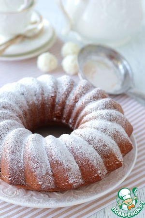 Готовый, остывший кекс посыпать сахарной пудрой.