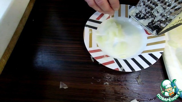 Измельчаем лук на мелкой терке.