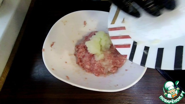 Отправляем лук в фарш.