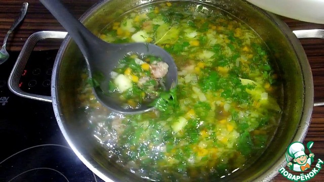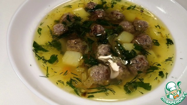 Суп с жареными фрикадельками