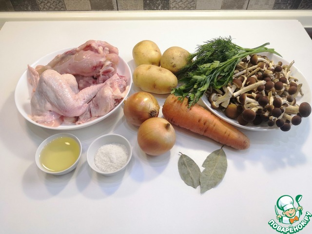 Сегодня приготовим суп грибной. Нам подойдут любые грибы доступные в магазине, будь то шампиньоны, вешенки или как в моем случае опята. А основа нашего супа будет на курином бульоне.