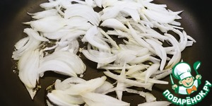 Нарезаем тонко лук перьями, обжариваем пару минут