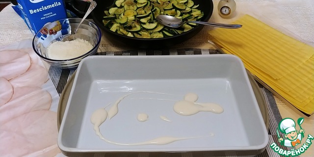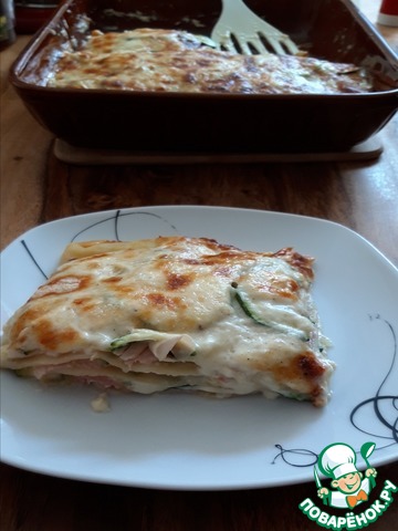 Рецепт «Лазанья с кабачками и куриной ветчиной»: