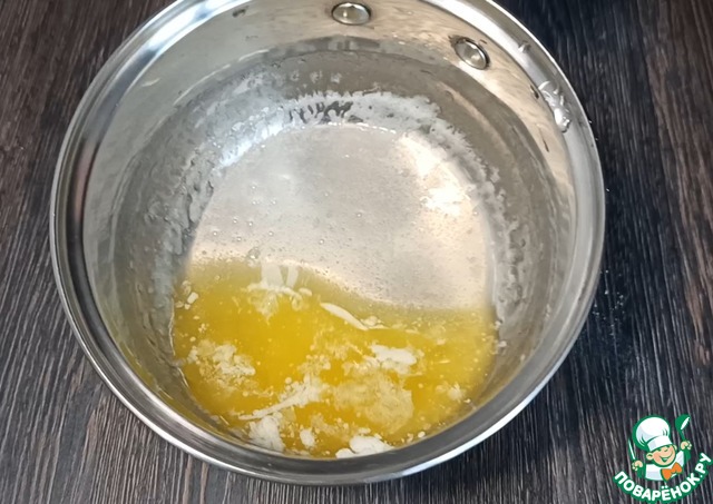 Соединяю масло сливочное с растительным, растапливаю на плите. Добавляю в тесто и размешиваю до однородности, НЕ взбивать.
