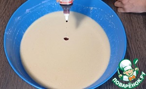 В готовое тесто добавляю краситель красного цвета, хорошо перемешиваю.