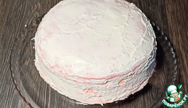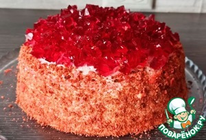 Украшаю торт мелко нарезанным вишнёвым желе.