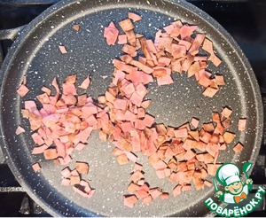 Два блина нарезаю мелко и подсушиваю на сковороде около 7-10 мин.