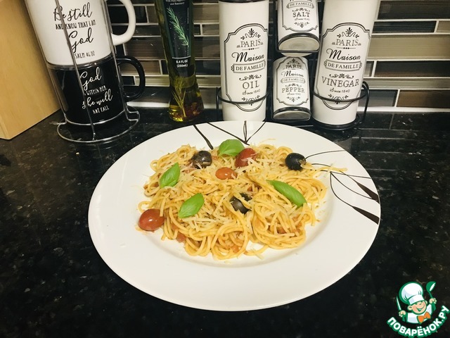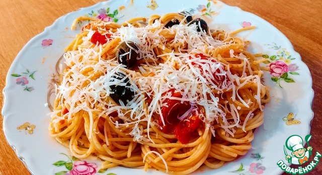 Рецепт «Макароны с томатами, оливками и сыром»: