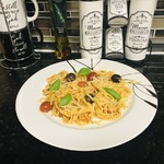 Макароны с томатами, оливками и сыром