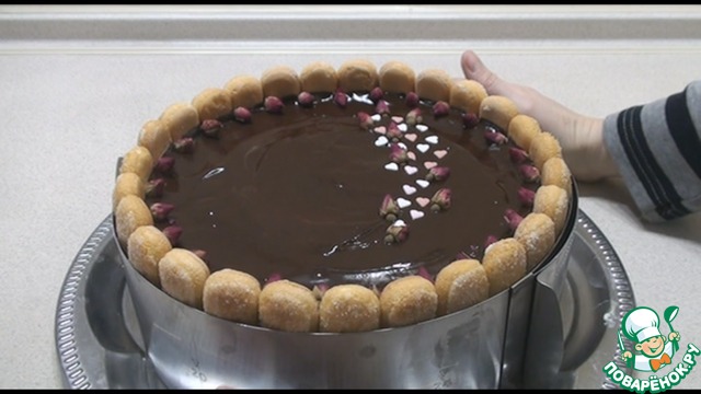 Украшаем по своему вкусу, у меня были маленькие розочки и сахарные сердечки, я их выложила красиво на глазурь.