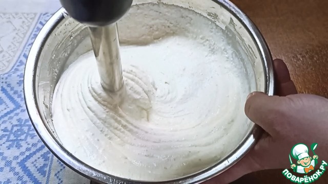 Сначала всё перемешиваем ложкой, а затем пробиваем блендером до однородного состояния.