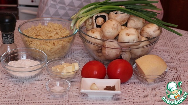 Ингредиенты для «Запеканка с макаронами, грибами, зеленым луком»: